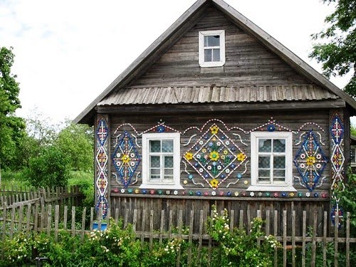 Olga Kostina, a pensioners in the isolated Russian village, Kamarchaga has been used her creativity and patience with plastic bottle cap to decorated her house. Her wooden house filled with the beautiful ornaments in colorful patterns and images.